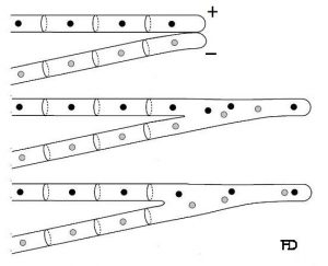 Die klein uitstulping verleng om ‘n buisie te vorm wat terug in die rigting van die hife buig.