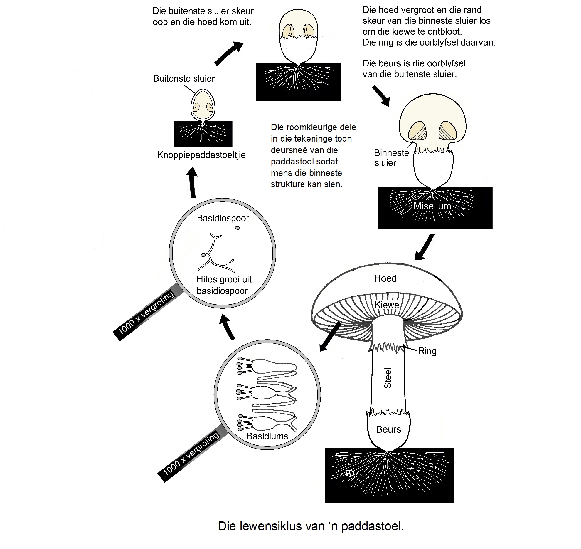 Alhoewel ek swamme fassinerend vind, het ek na my BSc Plantkunde-opleiding geen verdere spesialisstudies op swamme gedoen nie en sal myself nie as ‘n mikoloog voordoen nie. Ek moes vir die artikel o.a. na my ou universiteitsnotas teruggaan en bg. bronne raadpleeg. Ek sal dit hoog op prys stel as daar iets is wat ‘n Afrikaanssprekende mikoloog tot hierdie hoofstuk oor swamme kan byvoeg of verbeter – veral ten opsigte van die Afrikaanse vaktaal.