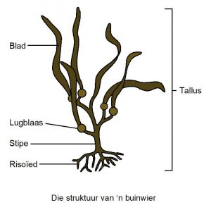 Alhoewel bruinwiere nie plante is nie, het hulle ‘n paar analoë kenmerke in gemeen met plante wat hulle deur konvergerende evolusie ontwikkel het. Aangesien bruinwiere se tallusse uit ongedifferensieërde parenchiemagtige selle bestaan en nie verskillende weefseltipes en organe soos dié van plante besit nie, kan dieselfde benamings vir soortgelyke strukture nie gebruik word nie. In sekere groepe bruinwiere word die tallus met ‘n hegstuk, wat uit wortelagtige risoïede bestaan, in die seevloer of op rotse vasgeanker, maar anders as in plantwortels, word water en minerale nie daardeur opgeneem nie. In kelp word die tallus in drie dele verdeel – die risoïede wat die tallus vasanker en die stamagtige stipe waaraan die blaaragtige blaaie of lamina vasgeheg is.