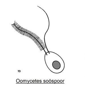 Waterskimmels (Oomycetes) en die 16 bekende spesies van die Hyphochytridiomycetes, is eukariotiese nie-fotosintetiserende organismes wat soöspore vervaardig wat twee verskillende tipes flagellas besit.