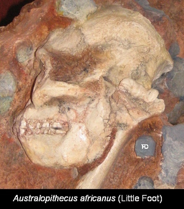 Die eerste Australopithecus africanus fossiel was in die begin van die vorige eeu deur ‘n mynwerker – ene De Bruyn – by Norlim Kalkmyn in Taung in Noordwes Provinsie ontdek. Prof. Raymond Dart het dit in 1924 uit ‘n stuk kalksteen gehaal en dit as die Vermiste Skakel geïdentifiseer (Dart, R. (1925) Australopithecus africanus The Man-Ape of South Africa. Nature 115: 195–199).