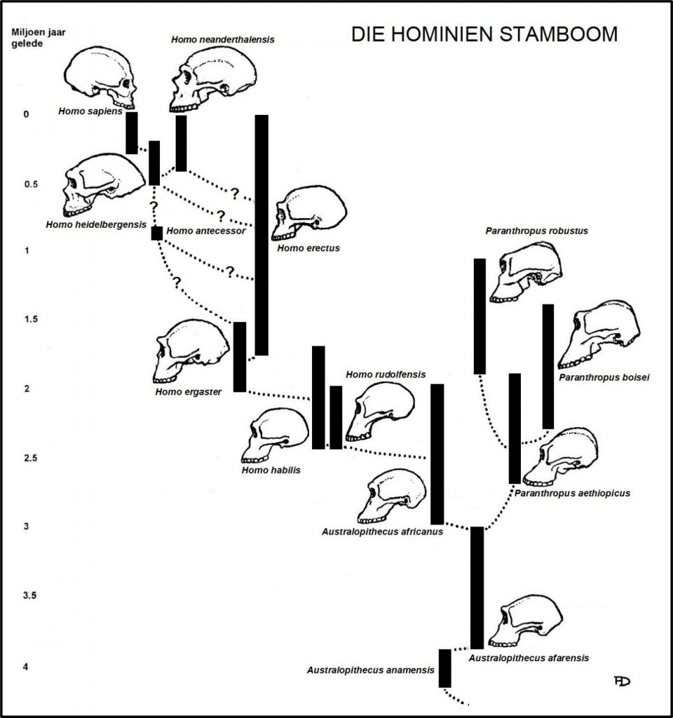 Hierdie stamboom van die mens wys die hominienspesies soos wat dit aan ons teen die einde van die vorige eeu bekend was. Intussen was daar verskeie nuwe fossiele soos Australopithecus sediba, Homo naledi, Homo floresiensis en Homo georgicus ontdek. Die hominienspesies in die stamboom en die nuwe fondse sal in opvolgende artikels bespreek word.