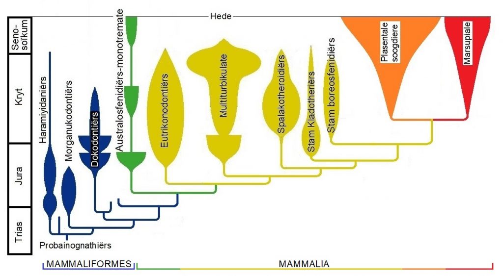 Die beskrywing van die diversifisering van die soogdiere sal in Diere Onderafdeling van die Biologie Afdeling vervolg word.