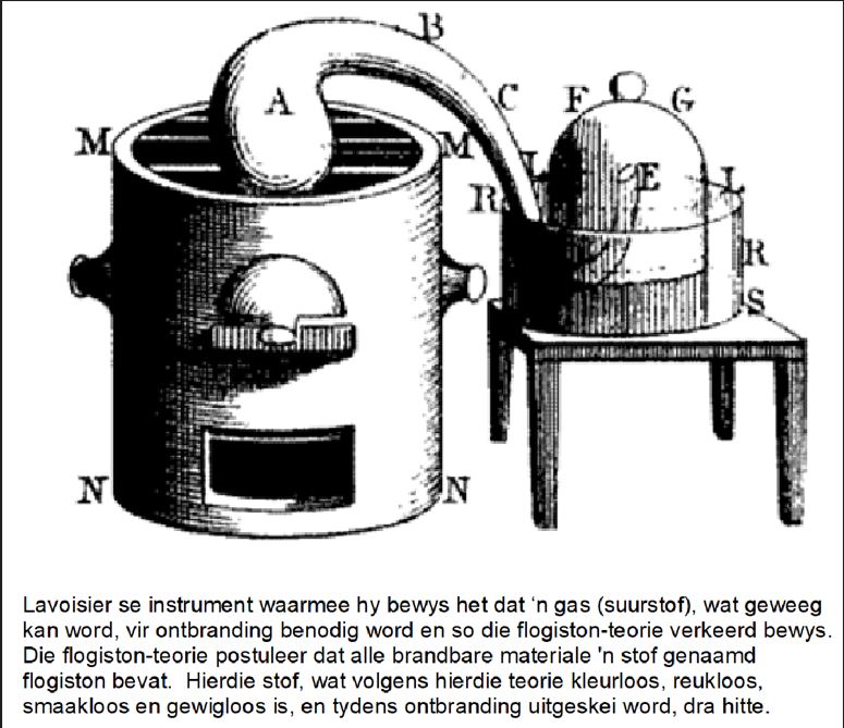 In daardie tyd was daar ‘n skeikundige wat ‘n groot bydrae tot chemie en biologie gelewer het, naamlik Antoine-Laurent de Lavoisier (1743-1794). Hy het die elemente waterstof en suurstof ontdek en benoem, en het die eerste lys van chemiese elemente saamgestel. Hy het die rol van suurstof in verbranding ontdek en die element silikon se bestaan voorspel, bewys dat swael ‘n element en nie ‘n verbinding is nie en dat water ‘n verbinding is en nie ‘n element nie.