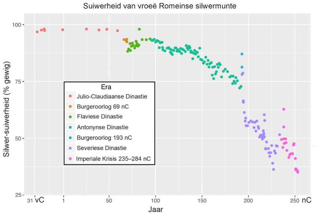 Maar moenie te veel hieroor bekommerd wees nie, want die regering doen dit nou sommer oop en bloot. Oorspronklik was munte van goud, silwer en brons gemaak. Mens het goue ponde, silwer sjielings en koper pennies gekry. Wanneer ‘n land op sy hoogtepunt van ekonomiese welvaart en administratiewe bestuur is, word munte dikwels uit edelmetale vervaardig. Net soos wat die Britse Ryk goue ponde gehad het, het die Romeinse Ryk silwer munte gehad, maar soos die Romeinse Ryk begin verval het, het die persentasie silwer van hul munte vanaf bykans 100% suiwer silwer tydens die heerskappy van Julius Caesar na 2% in die derde Eeu nC verminder.