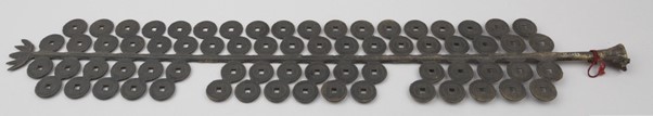Hierdie geld op ‘n string laat mens dink aan die skulpkrale wat in stringe op toutjies geryg was wat as betaalmiddel gebruik was. Hierdie gebruik het op baie lande en eilande rondom China voorgekom en word selfs vandag nog op Solomon Eiland as betaalmiddel gebruik.