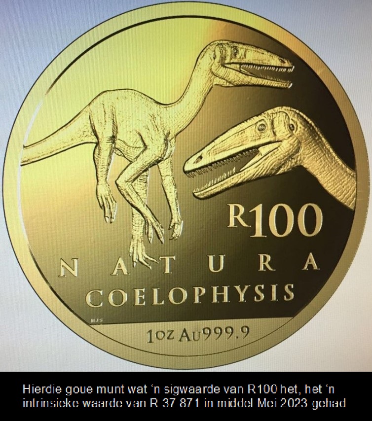 Goue munte is nie meer in sirkulasie is nie, want hul intrinsieke waarde is soveel groter as hul sigwaarde. Mens kan dit steeds gebruik om goedere vir R100 in die winkel te koop en die winkeleienaar sal al die pad na die Reserwebank glimlag waar hy dit vir R37 871 sal inruil.