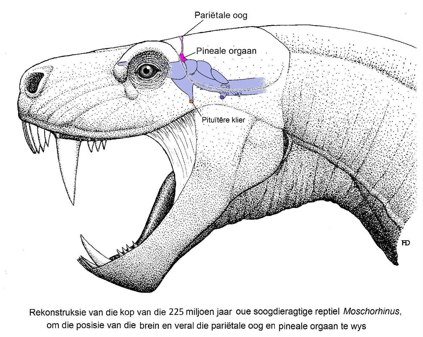 Die pariëtale foramen, en dus die pariëtale oog, het mettertyd al hoe kleiner in die theriodontiërs geword soos wat hulle al hoe meer soogdieragtige kenmerke ontwikkel het, totdat dit in die kuenodontiërs, die direkte voorsate van die soogdiere, verdwyn het.