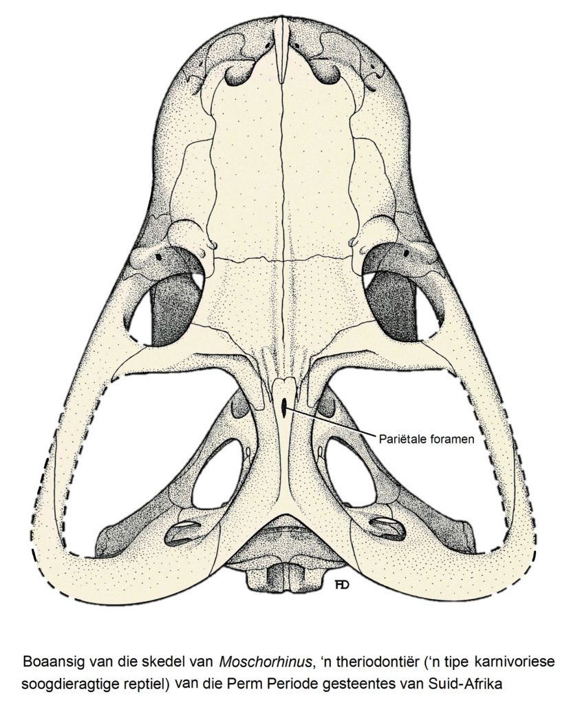 Die pariëtale foramen is duidelik sigbaar in talle fossiele en so kan mens aflei dat die voorouers van die soogdiere – die soogdieragtige reptiele, tot net voor die soogdiere se ontstaan, ‘n paiëtale oog gehad het (as jy meer oor die ontstaan van soogdiere wil uitvind, lees Theriodontia – die karnivoriese sinapsiede).