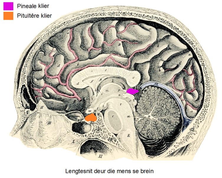 René Descartes, die 17de eeuse filosoof en wetenskaplike het die menslike pineale klier in sy boek L’Homme (1662) beskryf.  Hy was van mening dat die pineale klier die setel van die siel is en waar al ons gedagtes ontspring.  In die boek Passions verdeel hy die mens in ‘n liggaam en ‘n siel.  Hy lei dan af dat die siel aan die liggaam deur middel van die klein klier wat in die middel van die brein voorkom (die pineale klier) die vloei van die gees tussen die voorste deel van die brein en die agterste deel beheer.