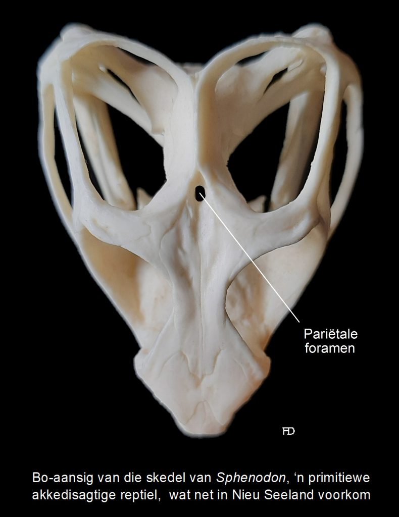 Franz Leydig, van die Universiteit van Tübingen, in Duitsland het vier akkedisspesies in 1872 gedissekteer en in elk ‘n klein koppievormige orgaan in ‘n gaatjie – die pariëtale foramen – in die middel van die skedeldak, bo die midbrein ontdek.  Hy het aangeneem dat dit ‘n tipe klier is en dit die sternorgan genoem wat later in ander tale na die frontale orgaan vertaal is.  In 1886 het Walter Baldwin Spencer van die Universiteit van Oxford 29 akkedisspesies gedissekteer en hierdie orgaan pineale of pariëtale organe genoem, omdat dit in die pariëtale foramen geleë is en met ‘n senuwee aan die pineale bult van die dak van die midbrein gekoppel is.  In 1918 het Nils Homgren van Swede pineale of pariëtale organe in paddas en haaie ontdek en ontdek dat dit ligsensitiewe selle besit – soortgelyk aan dié van die retina.  Van toe af het mense dit pineale, pariëtale of selfs die derde oog genoem.  In hierdie artikel sal ek dit die pariëtale oog noem, sodat mens dit nie met die pineale klier verwar nie.