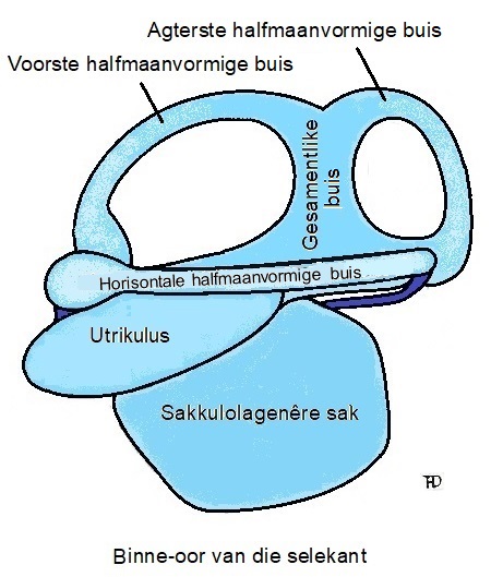Die drie ampullas sluit by ‘n sakvormige struktuur – die utrikulus aan.