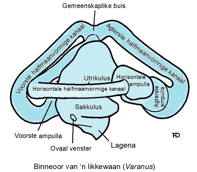 In die prentjie hieronder word die middeloorbeentjies van die reptiele deur die Varanus, die likkewaan – ‘n diapsied-reptiel, en Thrinaxondon – ‘n sinapsied-reptiel, verteenwoordig.