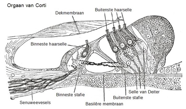 Die werklike gehoororgaan is die Orgaan van Corti wat in die slakkehuis van soogdiere voorkom. Dit het vanuit ‘n soortgelyke maar kleiner orgaan – die basilêre papilla wat in amfibieë, reptiele en voëls voorkom, ontstaan. Die Italiaanse anatoom Alfonso Giacomo Gaspare Corti het die gehoororgaan in 1851 ontdek wat toe na hom vernoem is.