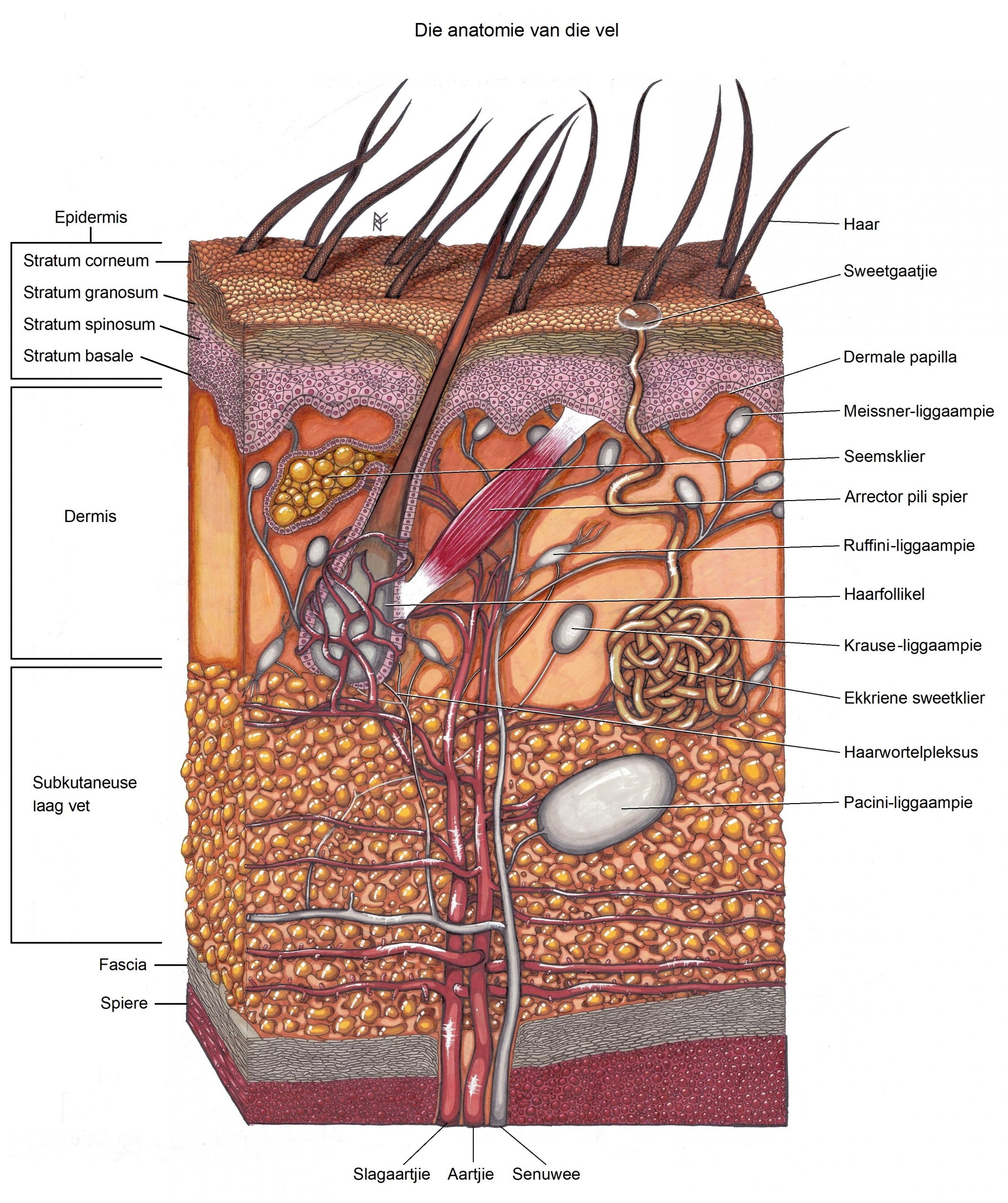 Lees meer oor die vel en sintuie van die vel in Afrikaans: