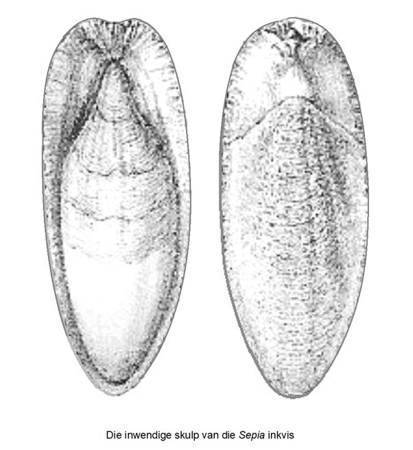 Verskeie lede van die Coleoidea het egter nog inwendige oorblyfsels van skulpe soos die langwerpige ovaalvormige inwendige skulp of kalkskyf wat in die Sepia inkvis (zeekat in Nederlands) voorkom, wat mense vir hul kouvoëltjies as byvoeding gee. Hierdie inwendige skulp groei saam met die inkvis en dien om die liggaam te verstewig. Die Spirula spirula inkvissie het weer ‘n inwendige skulpie met tipiese ramshoring-vorm wat hulle gedeeltelik met gas vul en wat hulle in staat stel om mee te kan ronddryf. Selfs seekatte (octopus in Nederlands) het steeds oorblyfsels van die skulp binne hul lywe.