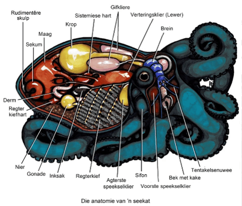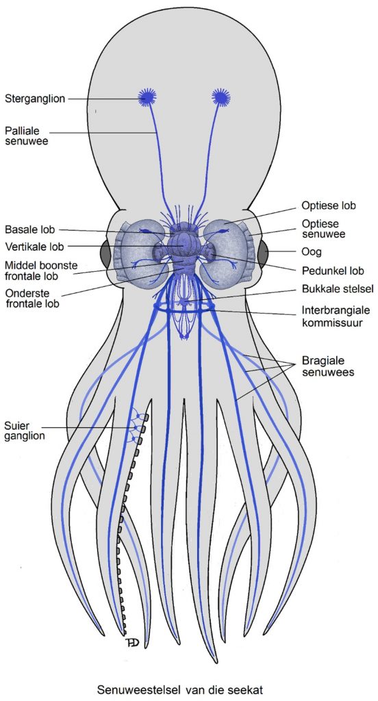 Die brein word gedeeltelik deur kraakbeen omhul om dit te beskerm. Daar is reuse senuweevesels in die mantel wat, weens die dikte daarvan, vir dekades vir neurofisiologiese studies gebruik is.