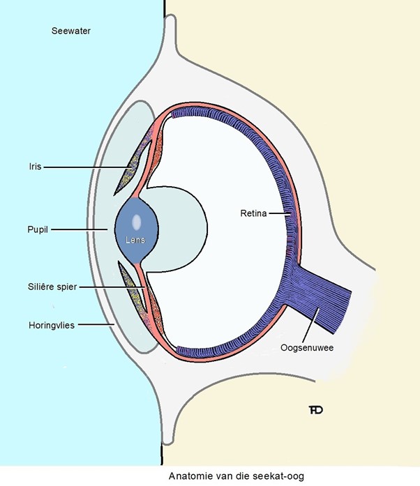 Die selle in die koppotige se retina is omgekeerd in vergeleke met dié van werweldiere, sodat lig dit direk tref eerder as wat dit eers deur senuwees moet skyn voor dit by die ligsensitiewe selle van die retina uitkom soos in die geval van die werweldier se retina. Die senuwees van die koppotige se retinaselle word in die optiese senuwee agter die retina saamgevat, terwyl die senuwees van die retinaselle van ‘n werweldier bo-oor die retina loop voor dit in die optiese senuwee verenig word. Dit veroorsaak dat die koppotige se oog nie ‘n blinde kol het nie, terwyl die werweldieroog ‘n blinde kol het, waar die optiese senuwee geleë is. Die rede vir hierdie teenoorgestelde rangskikking van die retinaselle is weens die feit dat werweldiere se retina en oogsenuwee eintlik ‘n uitstulping van die brein is (sien: Die Oog in die Senuweestelsel en Sintuie in die Anatomie Afdeling), terwyl die weekdierretina uit ligsensitiewe senuwees in die vel ontstaan.