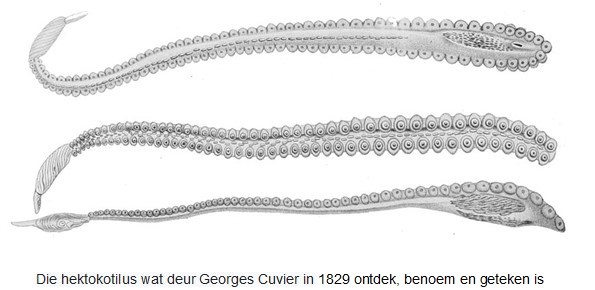 Oorspronklik, voor mense geweet het wat dit was, het mense gedink dat die hektokotilus, wat hulle soms in ‘n wyfie se mantelholte gevind het, ‘n parasitiese wurm was. Vir interessantheid Aristoteles (384-322 vC) was onder andere ‘n mariene bioloog wat toe reeds die hektokotilus beskryf het. Mense het of nie verstaan wat hy geskryf het nie, of dit geïgnoreer, of dit nie geglo nie, maar mettertyd is dit vergeet. Dit was eers in 1829 weer deur die beroemde bioloog George Cuvier ontdek, benoem en beskryf.