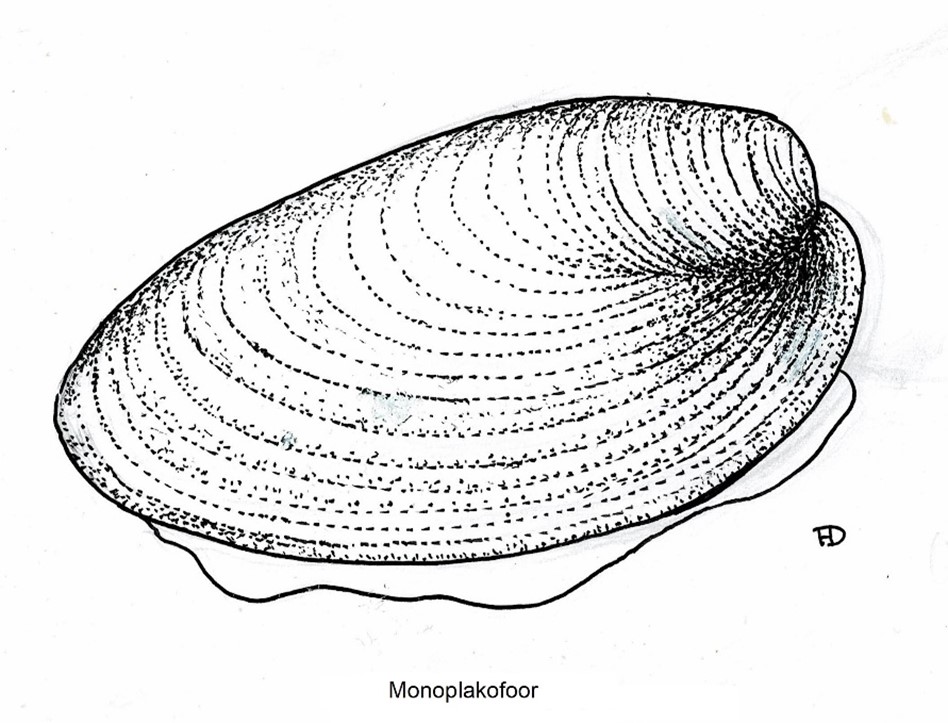 Die naam Monoplacophora, of monoplakofore, verwys na die enkel skulp wat hierdie groep het – in kontras met die talle skulpe van die Polyplacophora, of poliplakofore wat ook in die volksmond as kewerslakke bekend staan. Ten spyte van die ooreenkoms tussen hulle doppe met dié van klipmossels, is die monoplakofore en Gastropoda of buikpotiges slegs baie verlangs verwant. Vir lank het mense gedink dat die Polyplacophora, of kewerslakke, die mees primitiewe weekdiere is aangesien hulle ‘n paar primitiewe kenmerke soos series-gerangskikde spiere en natuurlik die doppe wat mens aan segmente laat dink. Dit was voor die wurmagtige weekdiere – die Aplacophora, of aplakofore, (die naam bedoel “geen skulp”) ontdek is, wat nog veel primitiewer blyk te wees.
