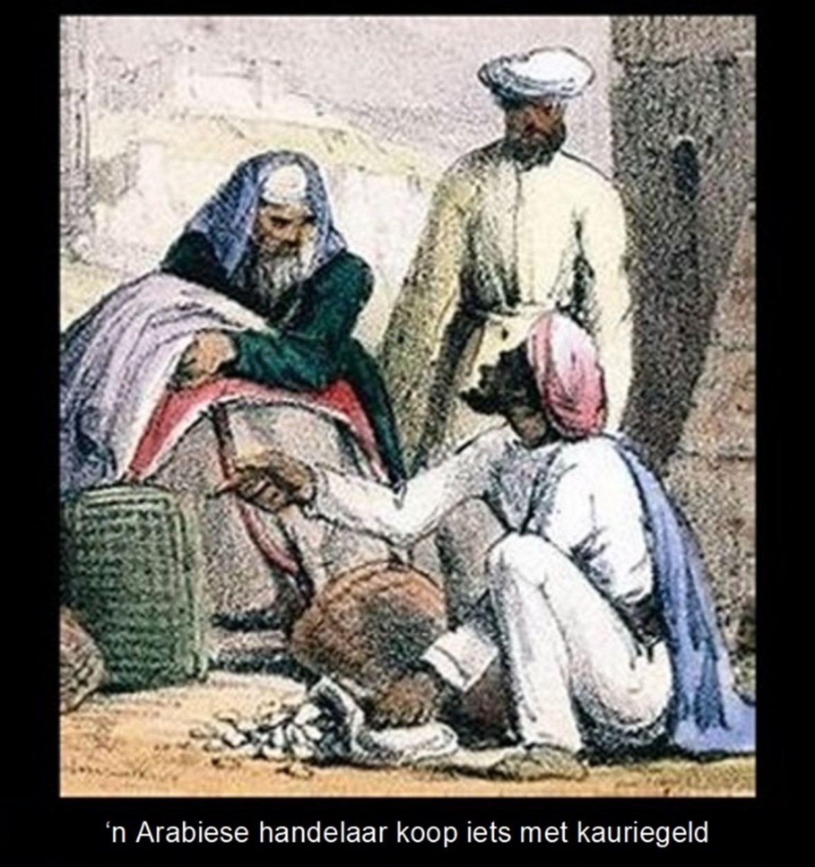 Die skulp wat vir die langste en mees wydverspreid vanaf lande rondom die Stille Oseaan en Indiese Oseaan gebruik is, is die geldkaurie Monetaria moneta. Hierdie heldergeel kaurie, wat mettertyd tot roomkleurig verblyk, kom in die Indiese Oseaan voor en is van die Afrika Ooskus vanaf Ras Hafun tot in Mosambiek en die Malabar kus van Indië en eilande soos Sri Lanka, Borneo en ander Oos Indiese eilande versamel. Dit kom terloops ook langs ons ooskus voor. Die geldkaurie was wydverspreid in die handelsnetwerke van Afrika, Suid-Asië en Oos-Asië en was tot in die middel van die 19de eeu gebruik. Die gebruik van geldkouries was so belangrik in China dat die piktogram wat hulle vir geld of handel gebruik, die teken vir kourie貝 is. Alhoewel skulpe deur geld vervang is, word skulpkrale vandag nog in die Solomon Eilande as baie waardevol beskou en word steeds gebruik om onder andere bruidskatte te betaal.