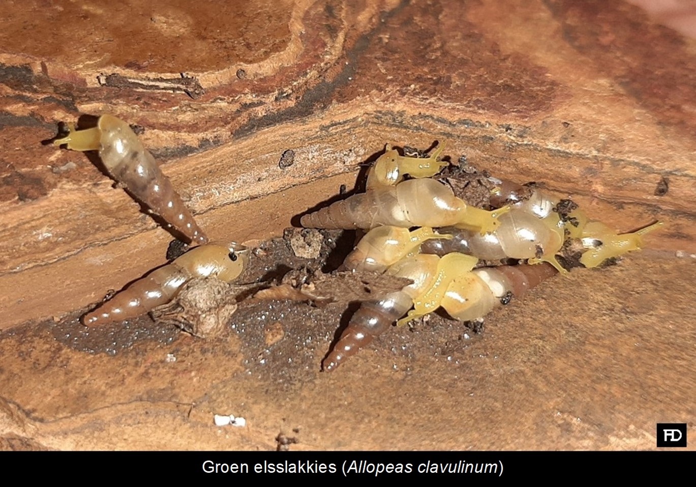 Die tropiese groen elsslakkie Allopeas clavulinum is wêreldwyd saam met plante versprei. Hulle dien as die tussengashere van die rotlongwurm Angiostrongylus cantonensis. Die larwes van hierdie parasitiese rondewurm ontwikkel in die slak tot die derdelarwestadium die slak verlaat en deur ‘n rot ingesluk word. Die rondewurm dring die longslagare van die rot binne. Eerstelarwes word in die rot se mis uitgeskei waarvandaan die slakkies dit inneem.