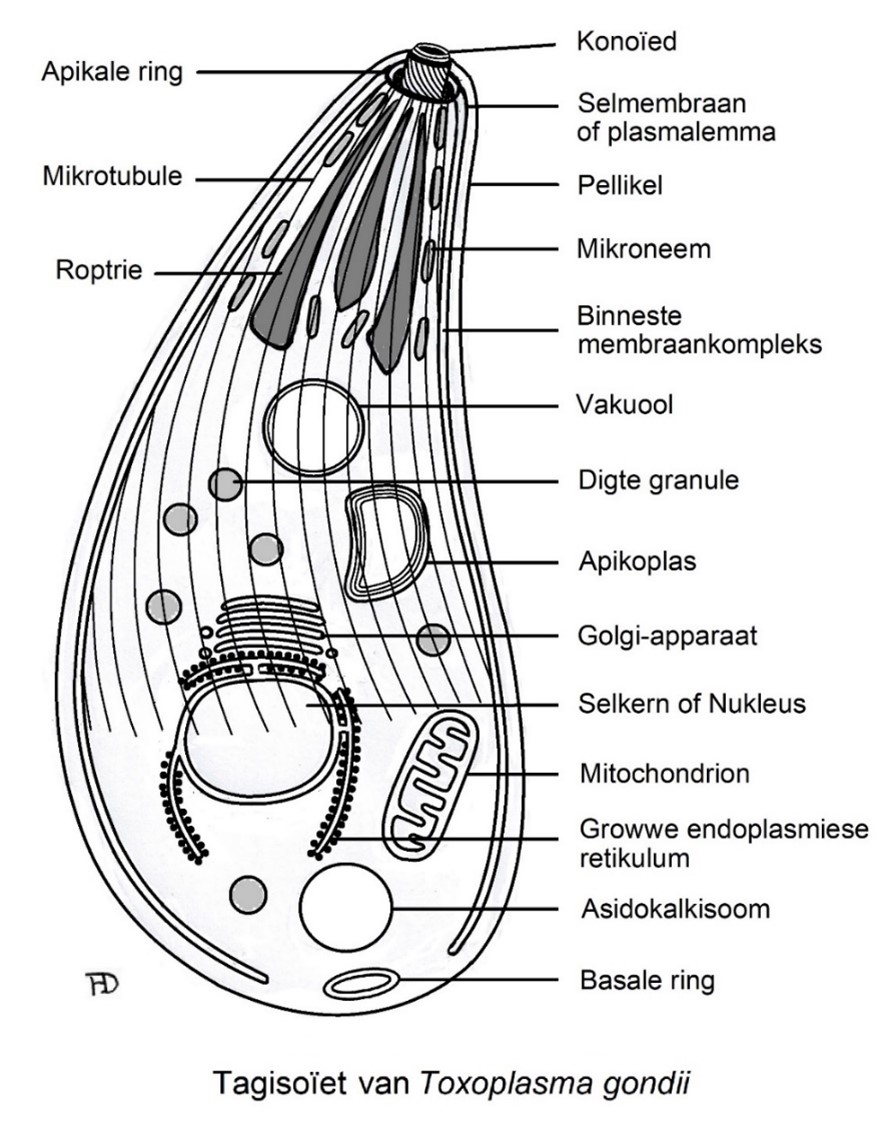 Toxoplasma gondii verskil egter heeltemal van ander bedeesde parasiete soos lintwurms en rondewurms wat ons met ons gedomestiseerde diere soos honde, varke en beeste deel, want anders as die meeste ander parasiete, gaan bly hierdie intersellulêre parasiet onder andere in jou brein waar dit jou gedrag kan manipuleer.  Oorspronklik was dit bedoel om die gedrag van die muis te manipuleer deur die natuurlike vrees wat muise vir katte het, af te skakel, sodat die muis vreesloos in die teenwoordigheid van ʼn kat sal rondloop.  Dit laat die kat toe om die muis te vang en te eet wat lewensnoodsaaklik vir die parasiet is om sy lewensiklus binne die kat se weefsels te voltooi.  Die kat mis dan natuurlik die oösiste uit wat weer muise besmet en so word die siklus herhaal.8