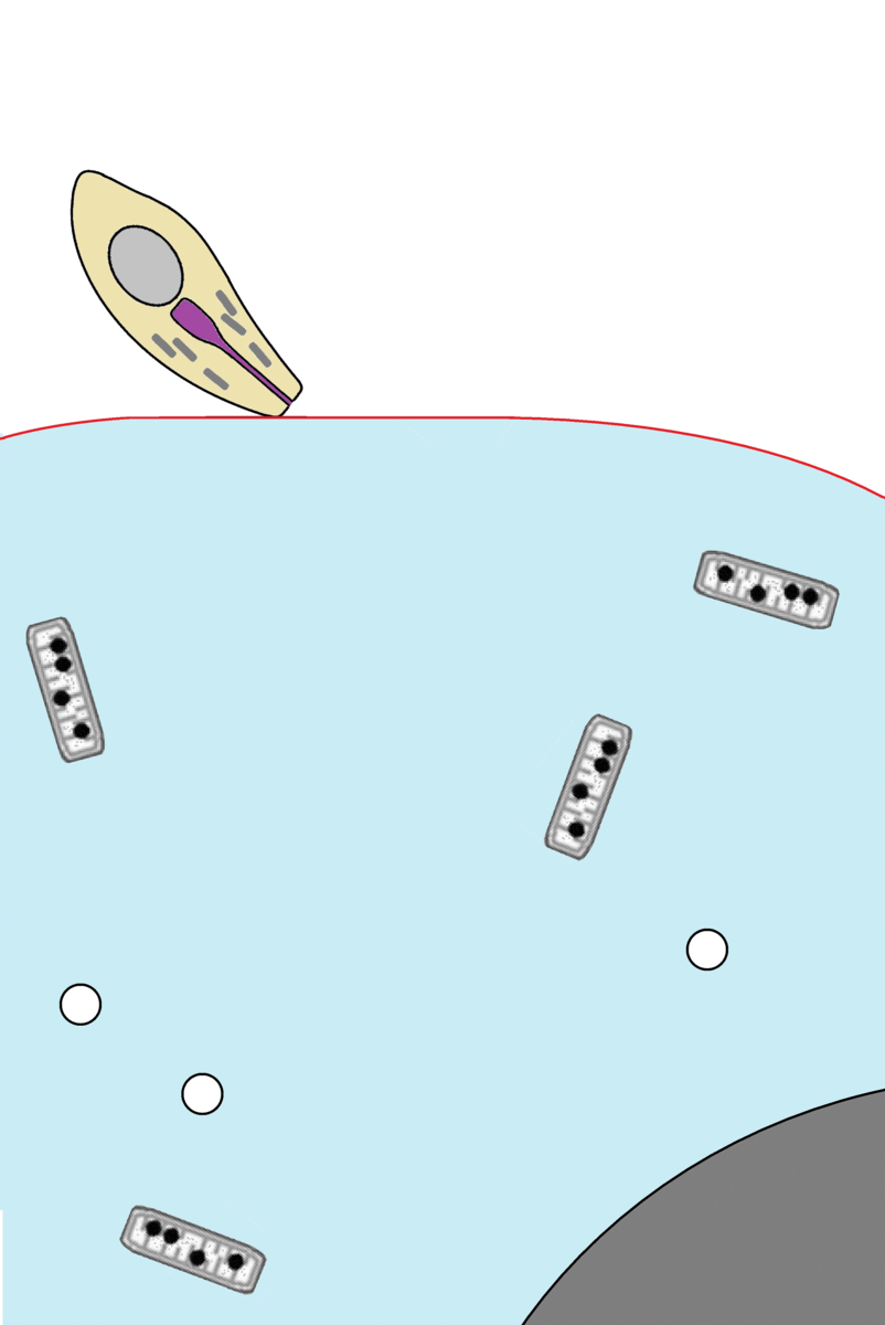 Die volgende stap vind plaas wanneer die klein staafvormige mikroneme binne die parasiet vorentoe na die apikale kompleks beweeg en oopbars om proteïene vry te stel, wat die gasheer se selmembraan oplos.  Daarna begin die roptrieë hul inhoud deur die konoïed afskei.  Roptrieë kom in amper al die lede van die Apicomplexa voor en bestaan uit langwerpige spuitvormige buise wat spesiale proteïene bevat.  Die punte van die roptrieë is in ʼn ring rondom die apikale kompleks gerangskik.  Die getal roptrieë verskil van spesie tot spesie.  In Plasmodium falciparum kom daar twee roptrieë voor, terwyl daar in Toxoplasma gondii tussen agt en twaalf roptieë voorkom.  Die roptrie-afskeidings koppel die parasiet teen die gasheer vas en vorm dan ʼn beweeglike koppeling tussen die parasiet en die gasheer, en inhibeer die gasheersel se eerste verdedigingsmeganismes wat geaktiveer word om die integriteit van die selmembraan te beskerm.