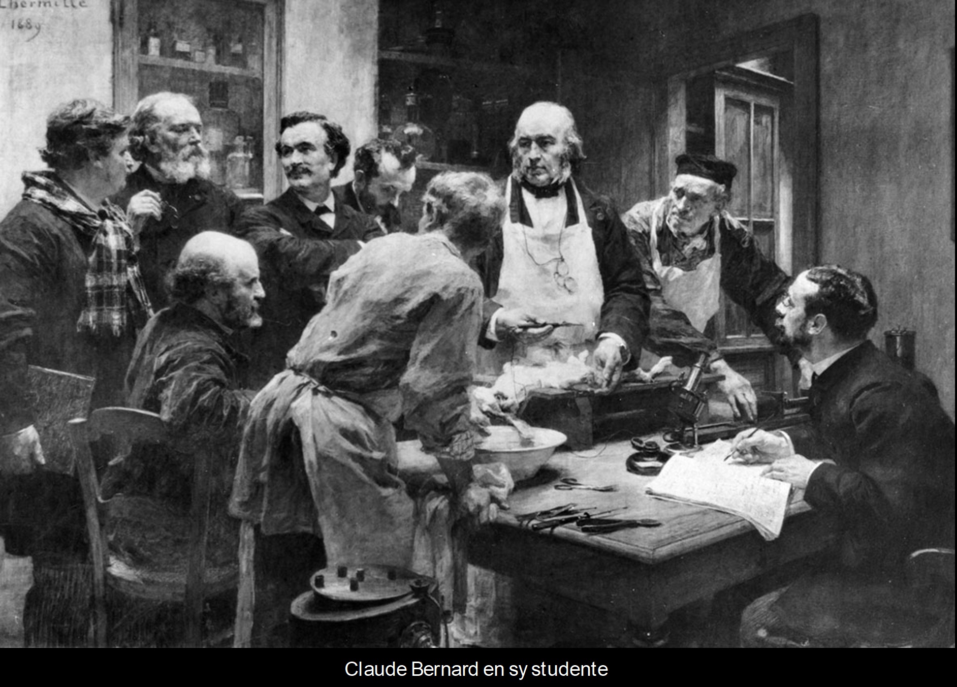 Claude Bernard (1813 – 1878) was ‘n bioloog en geneeskundige van Frankryk en het ‘n besondere bydrae tot die studie van fisiologie gelewer en was die eerste akademikus wat as fisioloog by ‘n universiteit aangestel is. Hy het die sogenaamde “milieu intérieur” van organismes bestudeer wat die grondslag van die studie van homeostase gelê het (homeostase verwys na die interne metaboliese balans en regulering van ‘n organisme). Van sy ander groot wetenskaplike bydraes sluit in die studie van die funksie van die pakreas en die bewys dat pankreassap ‘n rol in spysvertering speel, die rol van die lewer in die vervaardiging van glikogeen wat belangrike rol in suikersiekte speel, die ontdekking van die vasodilator en vasokonstriktor senuwees en die ontdekking van die effek van koolstofmonoksied op hemoglobien.