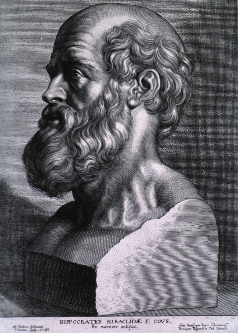 Hippokrates het die studie van humorale patologie of die studie die vier vloeistowwe of humores, soos hy dit genoem het, naamlik: geel en swart gal, bloed en slym gebruik om die gesondheid van die liggaam te bepaal. Volgens hom sou ‘n versteuring in enige van hierdie vloeistowwe tot siektetoestande lei. Hierdie benadering was tot en met die 19de Eeu algemeen in gebruik, soos onder andere met bloedlating, wat volgens die genesers van ouds, pasiënte met te veel bloed, van hul kwale, sou genees. Volgens hierdie mense was probleme met die bloed met die lewer verbind, geel gal met die galblaas, swart gal met die milt en slym met die longe of brein.