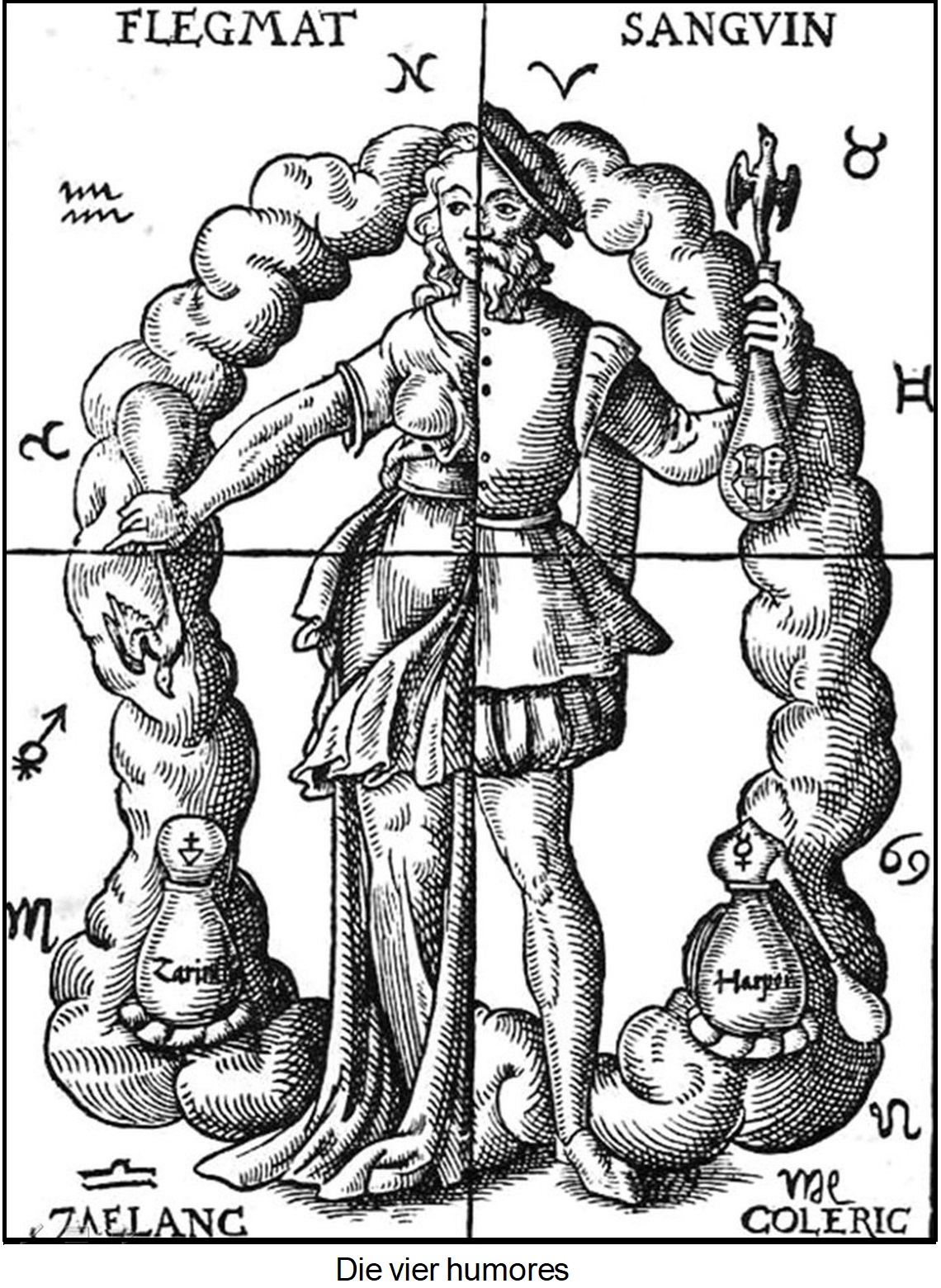 Hierdie filosofie was so populêr dat dit selfs gebruik is om mense in vier persoonlikheidstipes naamlik, flegmaties, sanguinies, choleries en melankolies te verdeel wat veronderstel was om met die wanbalans van slym, bloed, geel en swart gal onderskeidelik gepaard gegaan het. Dit was ook in verband gebring met die vier elemente waaruit, volgens die Antieke Grieke, die kosmos bestaan het, naamlik: water, vuur, lug en aarde.
