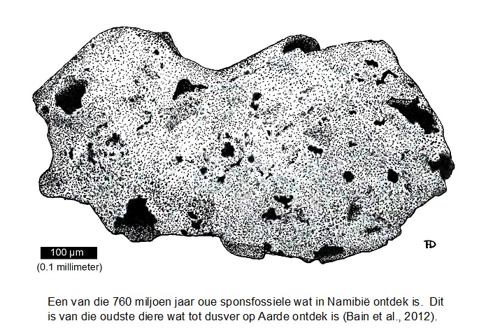 Van die oudste dierfossiele wat tot dusver ontdek is, is die 760 miljoen jaar oue mikroskopiese sponsfossiele van Namibië, wat veel ouer as meeste ander fossiele van meersellige diere is (Brain et al. 2012). Die bou van hierdie fossiele is identies aan dié van jong sponsies en sekere mikroskopiese sponsspesies.