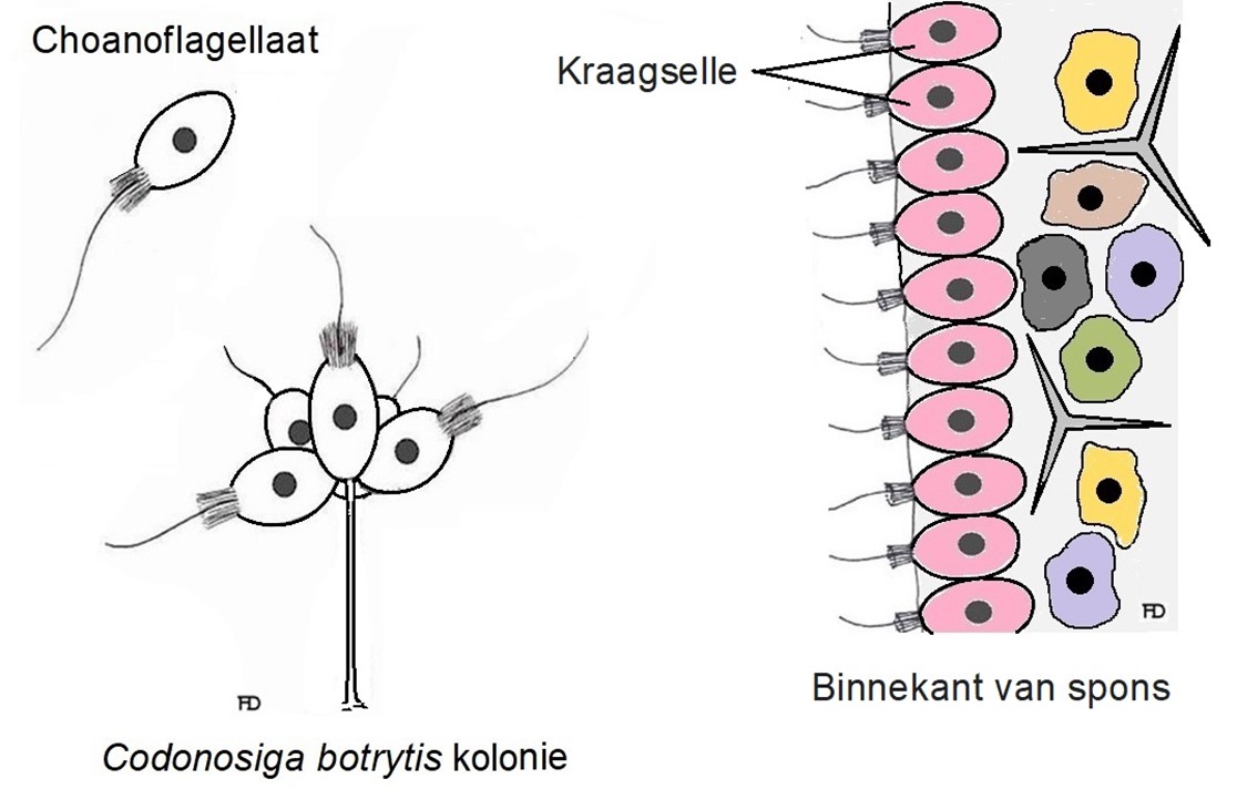 Dit is die interessantste en belangrikste aspek van sponse – hulle is van die eerste diere wat uit eensellige organismes ontstaan het en dit is die rede hoekom choanoflagellaat- en ameboïedselle van sponse soos vrylewende choanoflagellate en amebas lyk en optree. Mens kan dus nie sommer ‘n spons doodmaak deur om dit in stukkies te versnipper of uitmekaar te trek nie. Trouens, as mens ‘n spons in die kleinste moontlike deeltjies met ‘n versapper opsnipper en dit ‘n mariene akwarium gooi, sal mens ‘n paar dae later duisende mikroskopiese sponsies op die die binneste oppervlaktes van die akwarium kry. Die selle het dus die opsnippering oorleef en kon as vrywelende organismes oorleef tot hulle nuwe sponsies kon vorm (Soubigou et al., 2020).